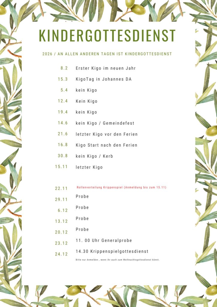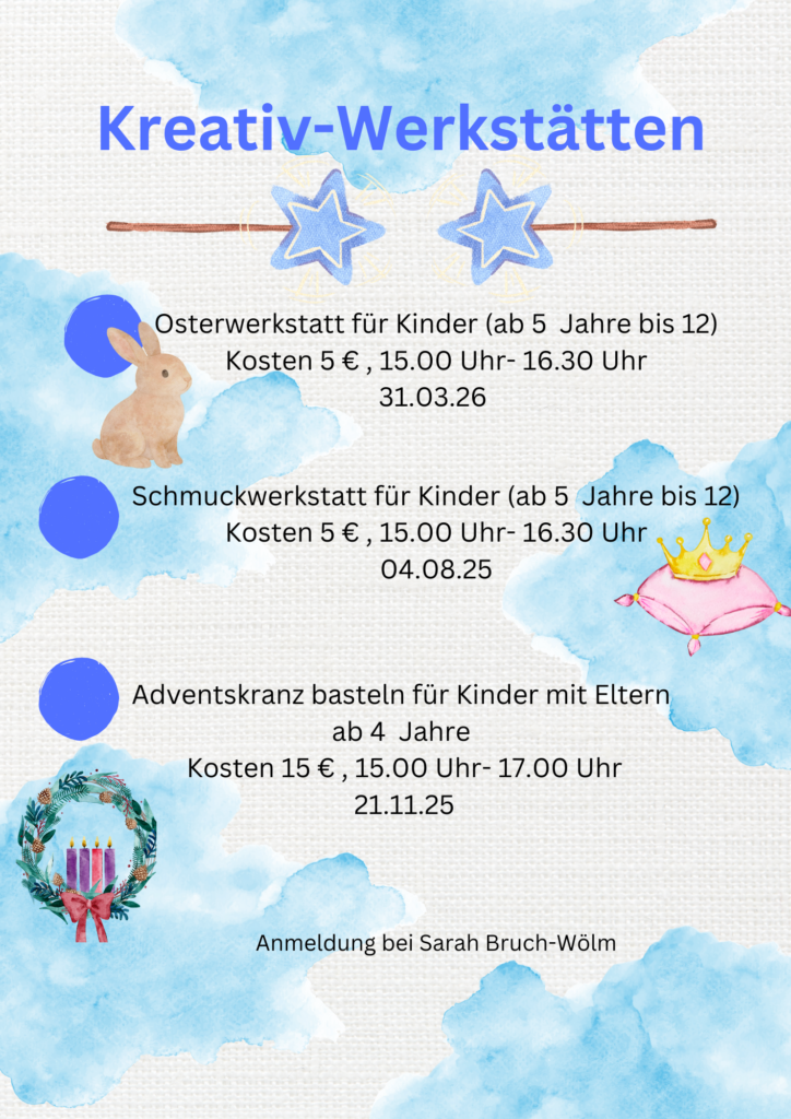 Ab dem 22.11.26 starten die Krippenspielproben und die Rollenverteilung. Bitte bis 15.11.26 bei Sarah Bruch-Wölm anmelden.