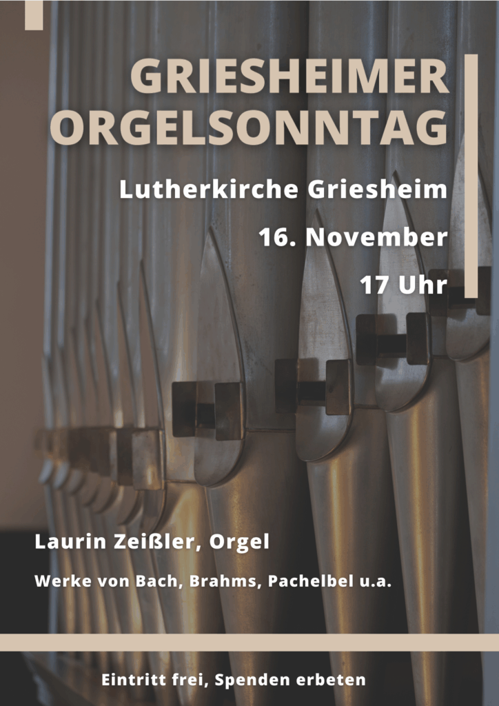 Mit Werken von Bach, Rinck und Brahms gestaltet Laurin Zeißler den letzten Orgelsonntag des Jahres am 16.11.2025 um 17 Uhr in der Lutherkirche.